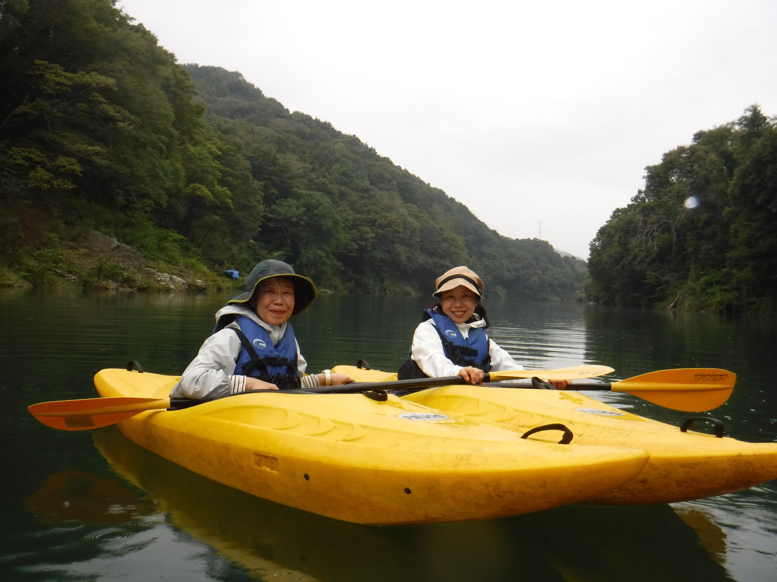 ちょいと小雨あり午前中雨あがってカヤックです穏やかな湖面にのんびりツアーまたどうぞ!本日のカヌーテのカヌー漕艇場前風景とカヤックツアー風景