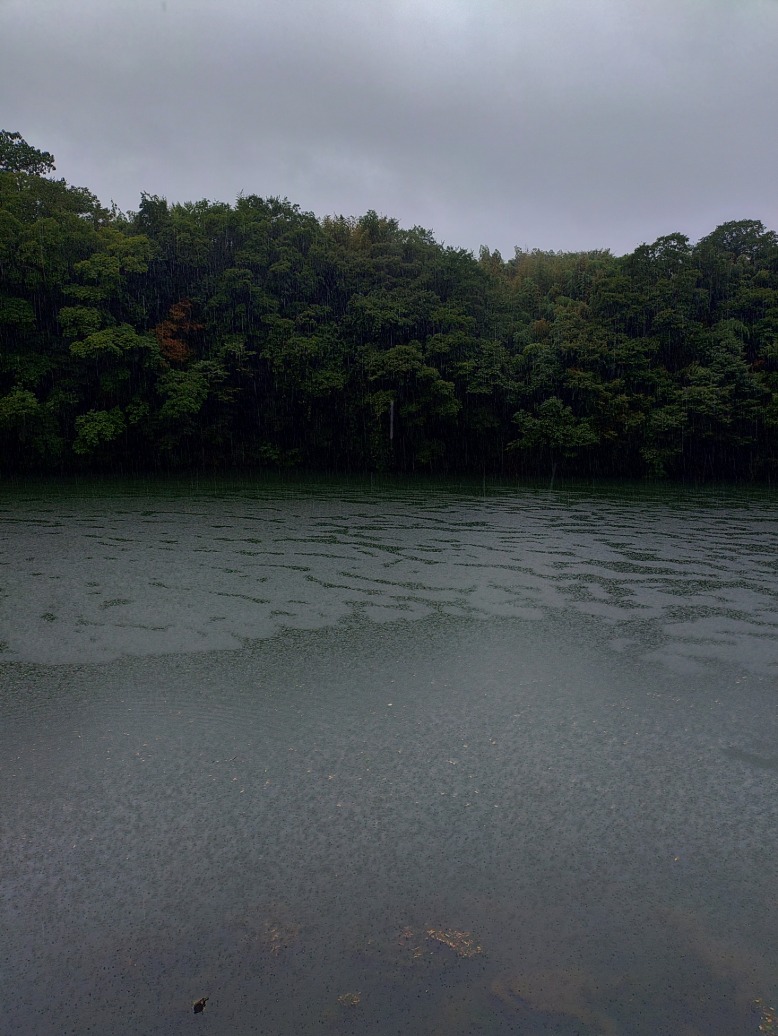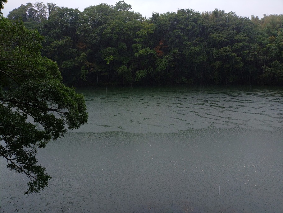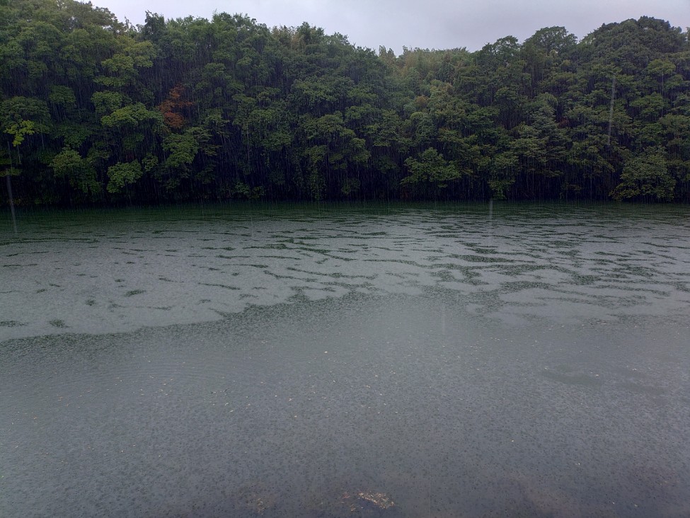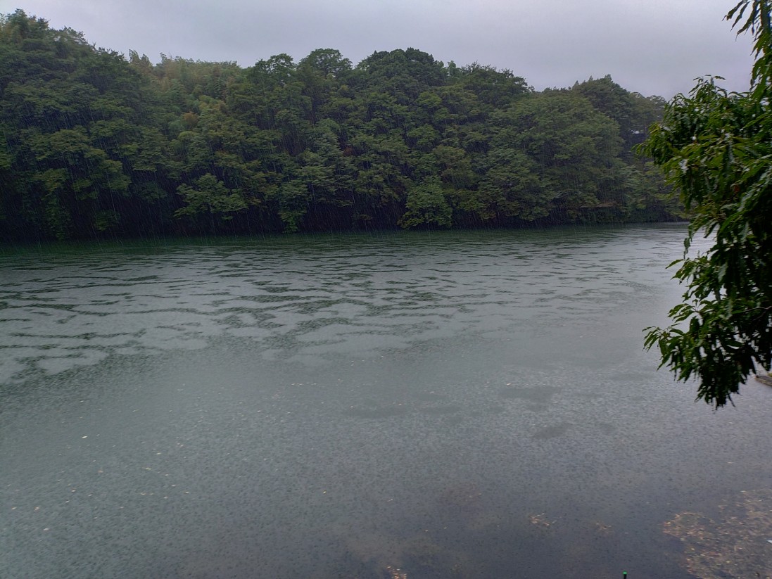 雨が降ってます、風は然程ありません